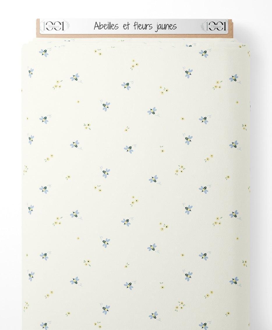 Tissu - Abeilles et fleurs jaunes