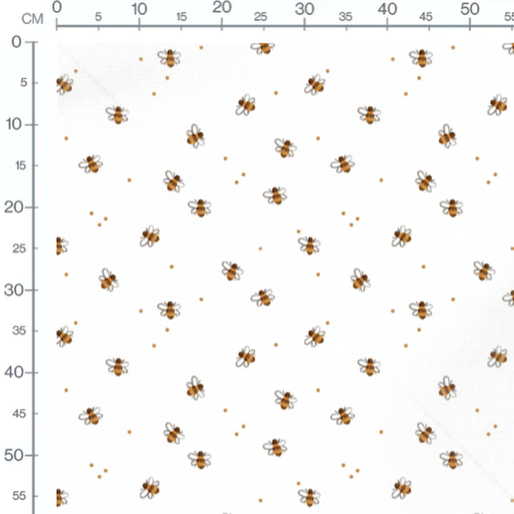 Les abeilles ont des ailes grises et des corps rayés marron et noir. Les pois dorés ajoutent une touche de couleur au fond blanc.Les tissus