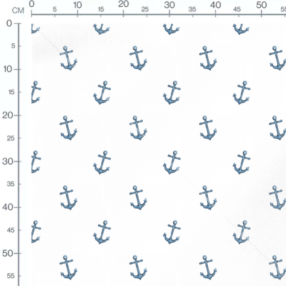 Les ancres sont de couleur bleue avec un style aquarelle. Le fond blanc met en valeur le motif marin.Les tissus