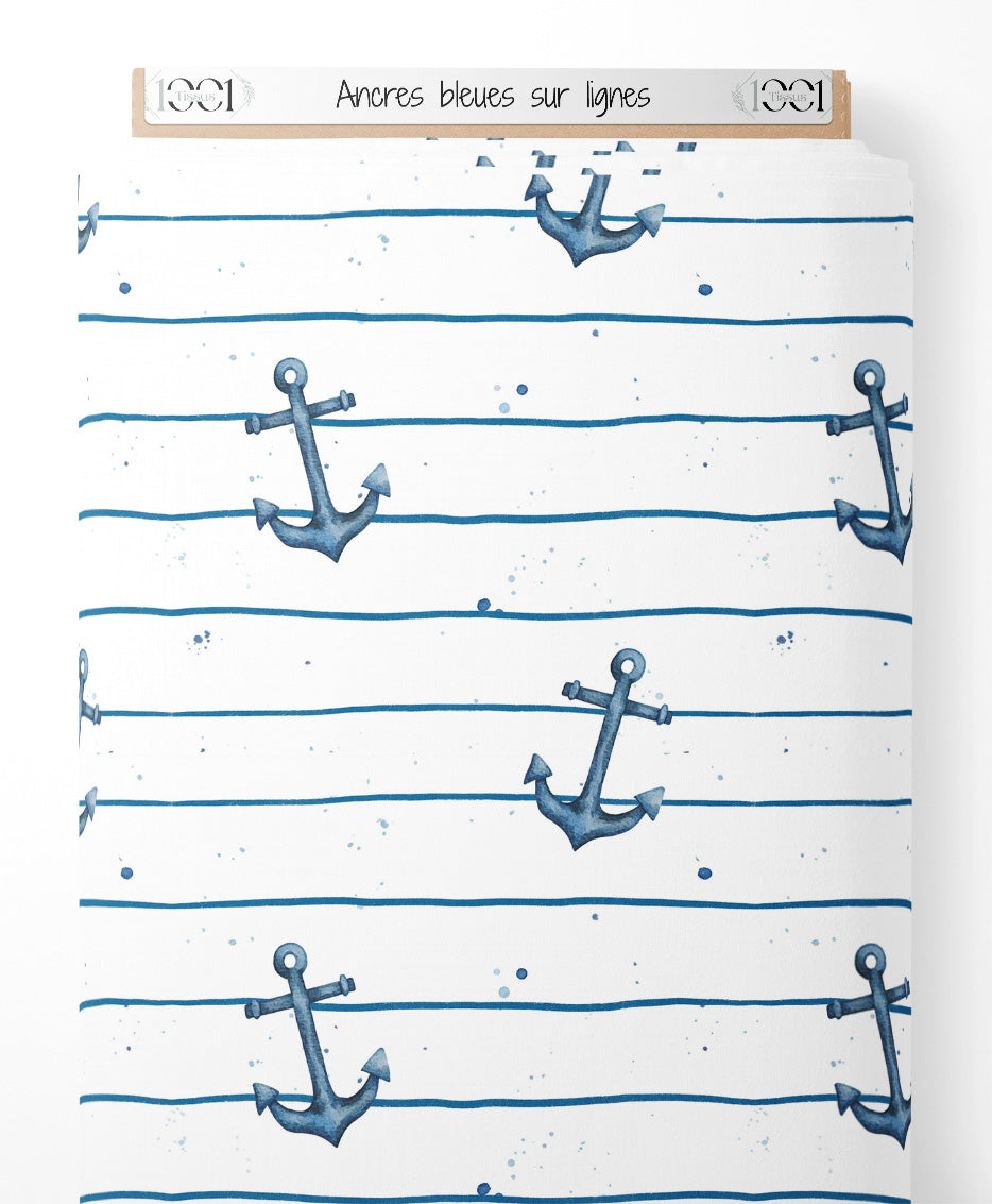 Tissu - Ancres bleues sur lignes