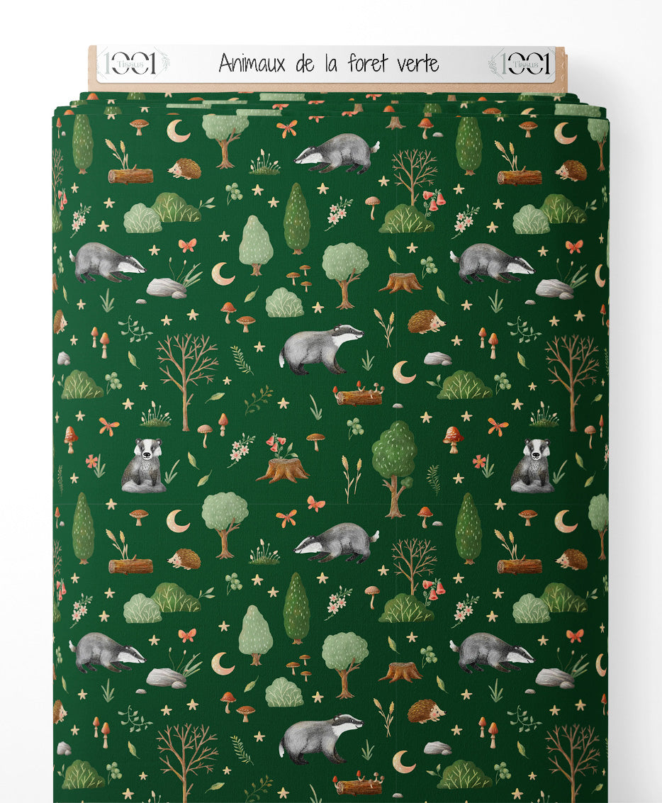 Tissu - Animaux de la forêt verte