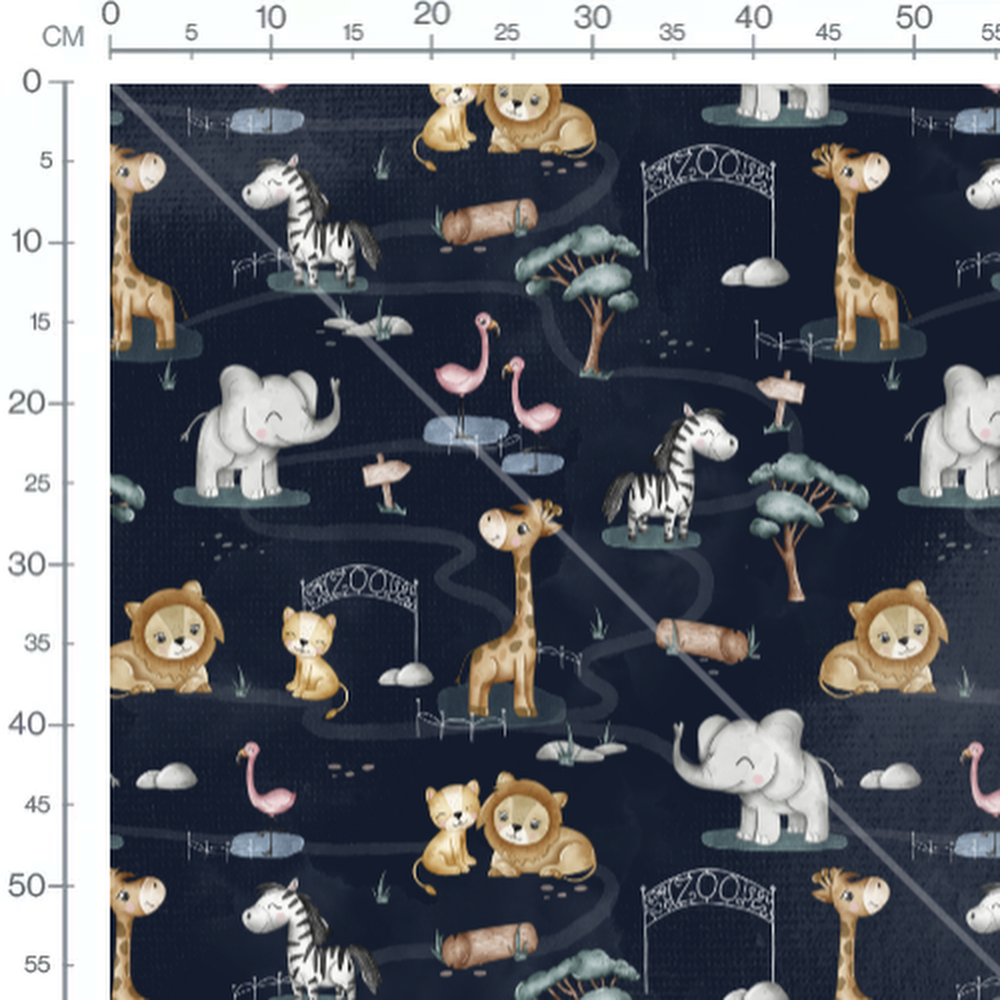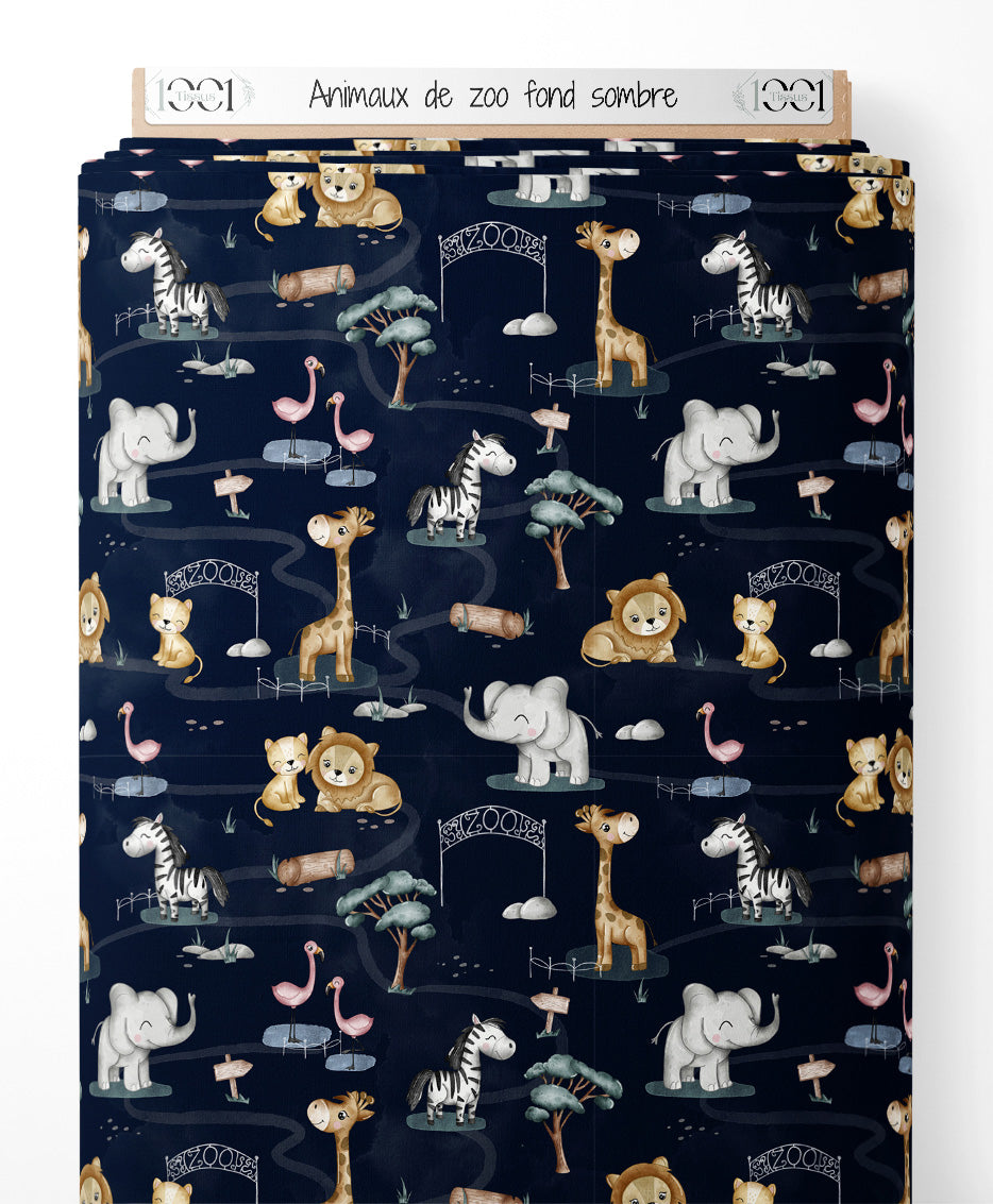 Tissu - Animaux de zoo sur fond sombre