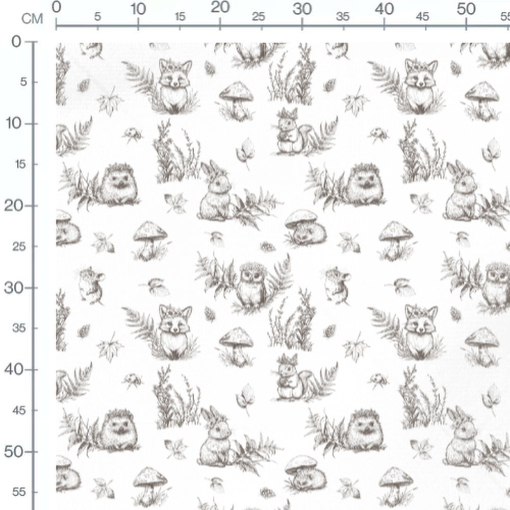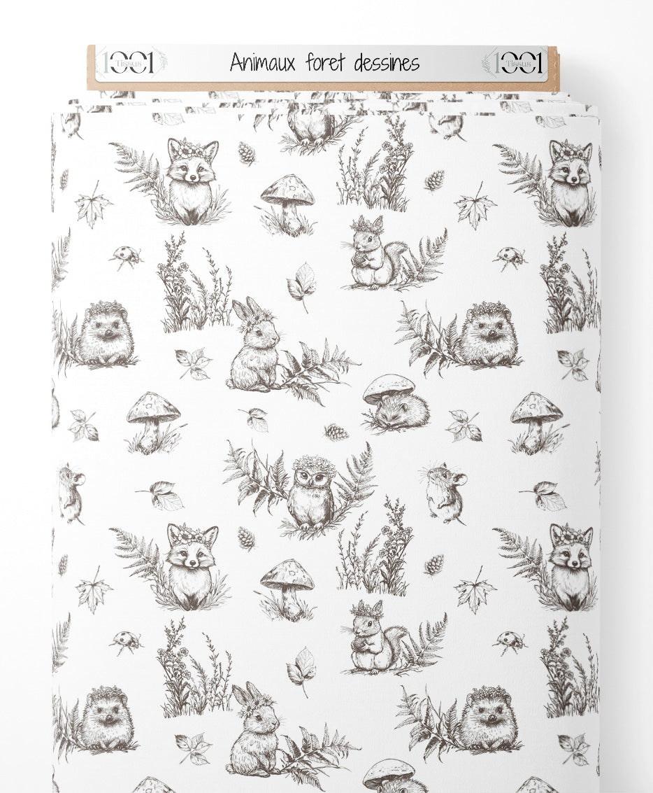 Écureuils et hiboux ajoutent une touche de charme au motif. Les détails des fougères et des feuilles complètent le thème forestier. Les champignons apportent une dimension naturelle et authentique.Les tissus