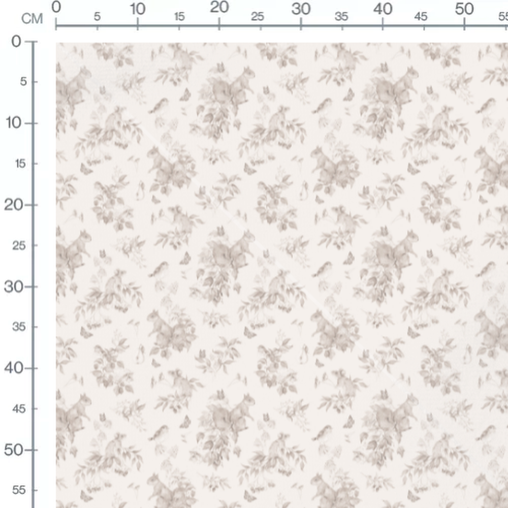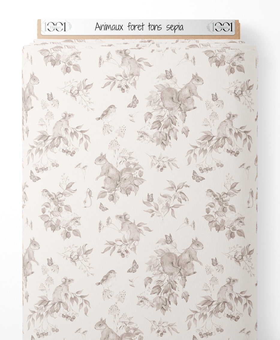 Tissu - Animaux forêt tons sépia