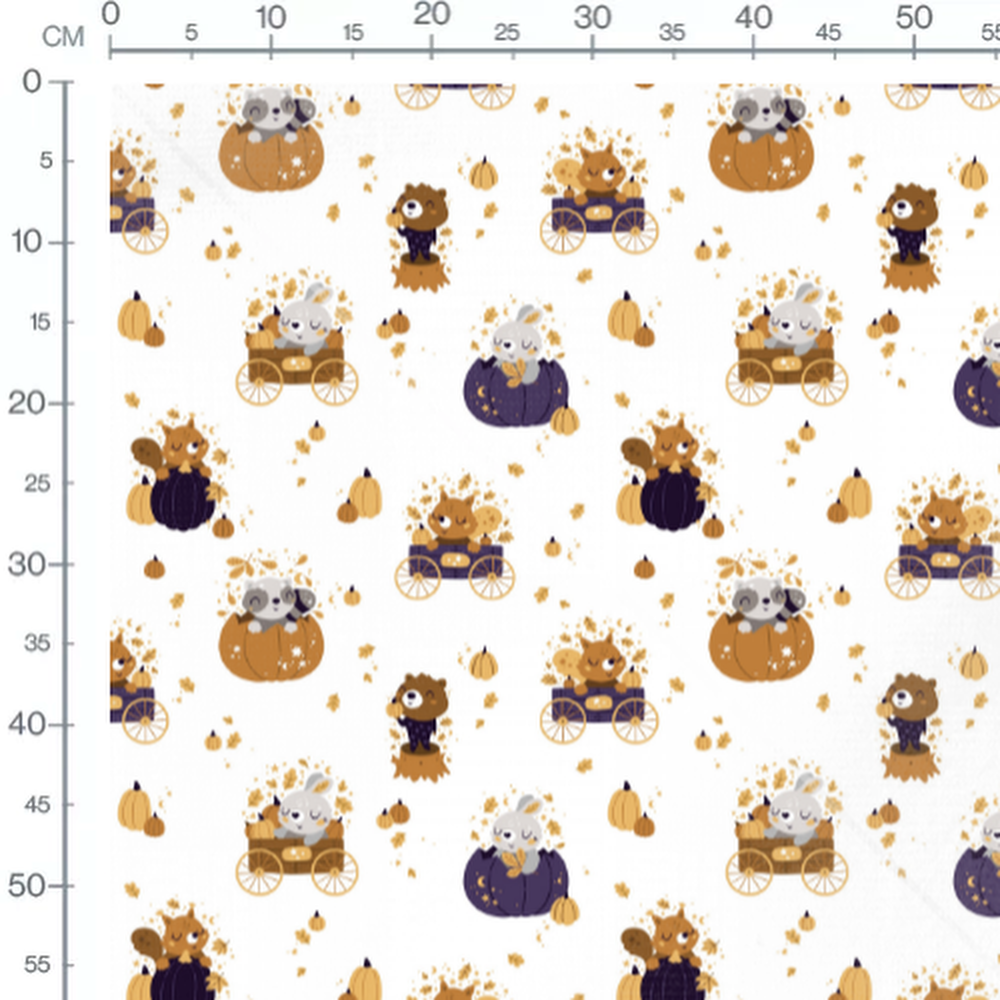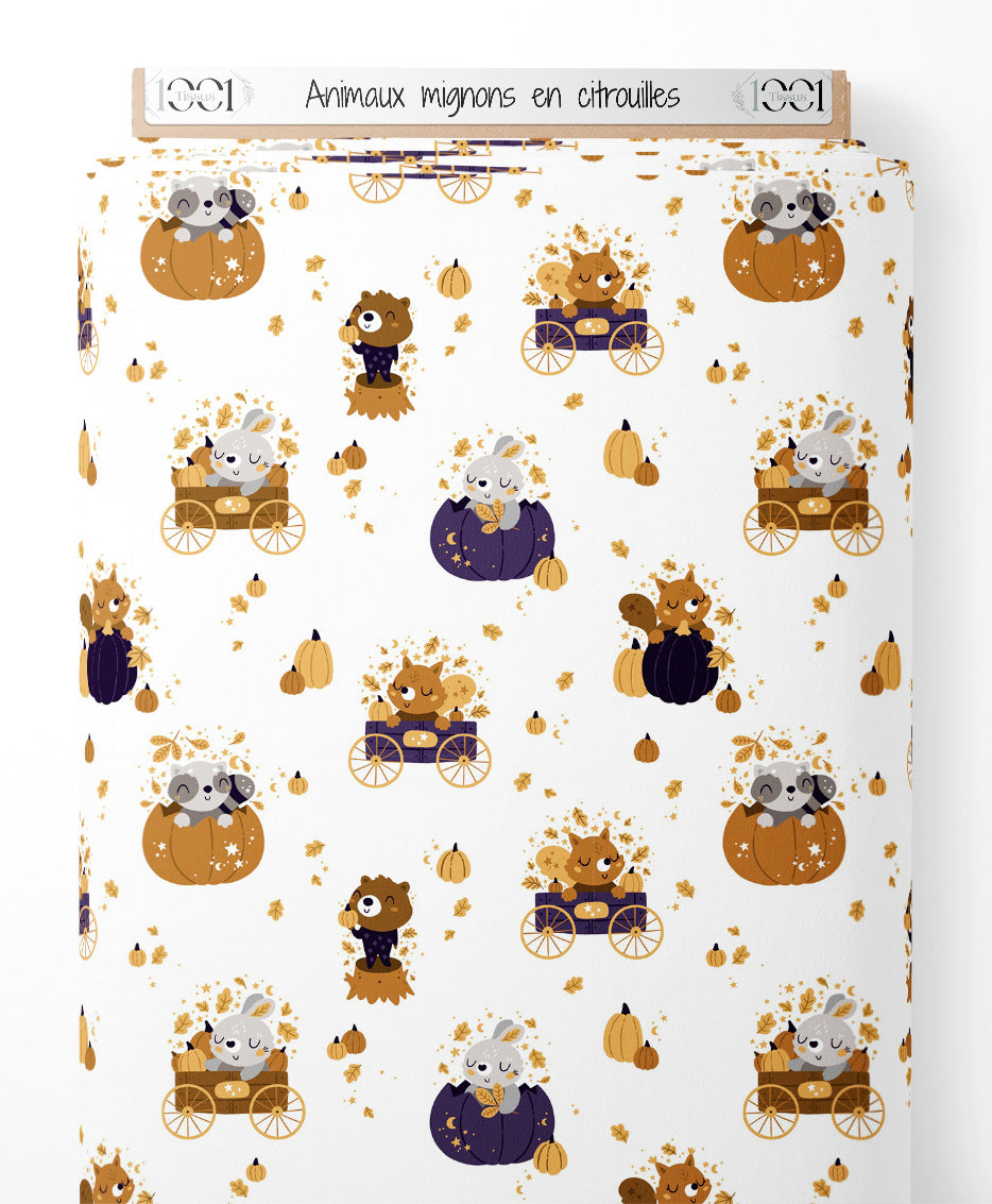 Tissu - Animaux mignons en citrouilles