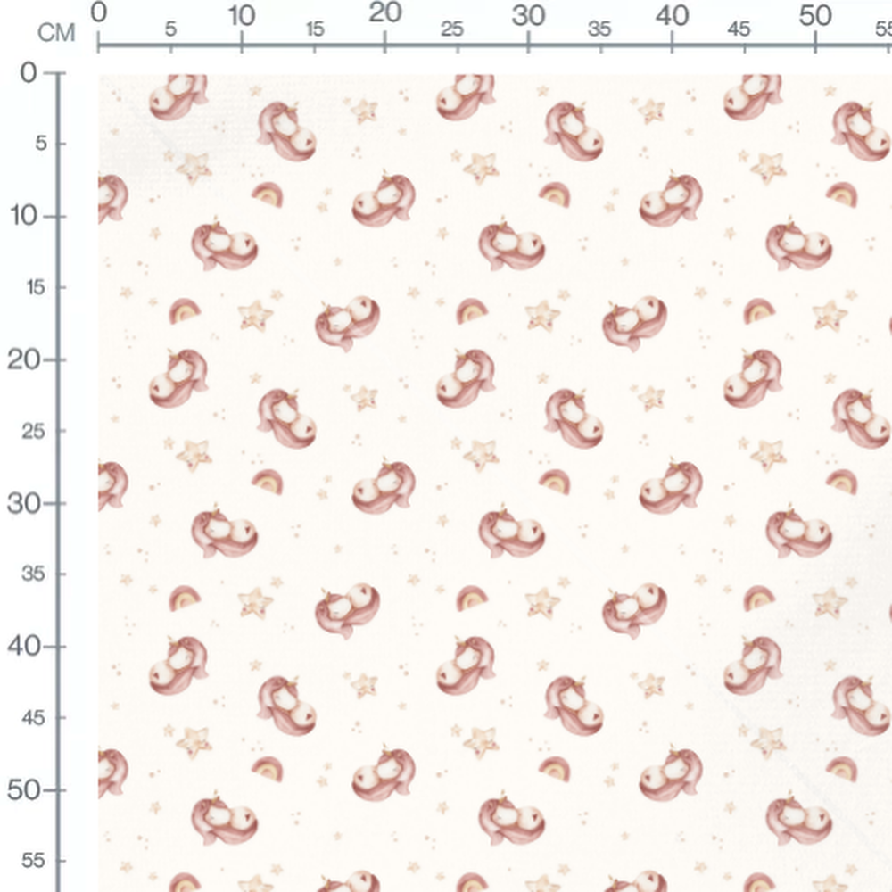 Les animaux sont entourés de petites plantes et champignons colorés. Le fond blanc met en valeur les teintes douces des animaux. Les arbres sans feuilles ajoutent une touche hivernale au motif.Les tissus