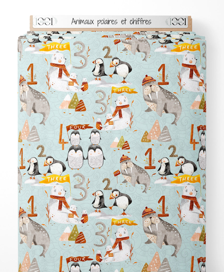 Tissu - Animaux polaires et chiffres
