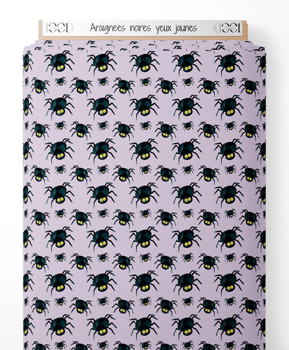 Tissu - Araignées noires yeux jaunes