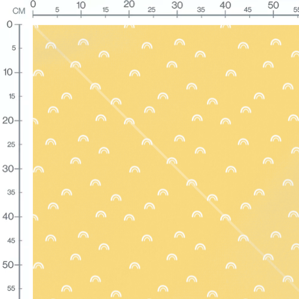 Les arcs sont uniformément répartis sur un fond jaune vif. Chaque arc est de couleur blanche, créant un contraste doux et moderne.Les tissus