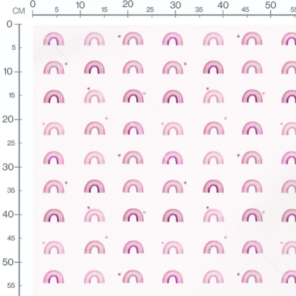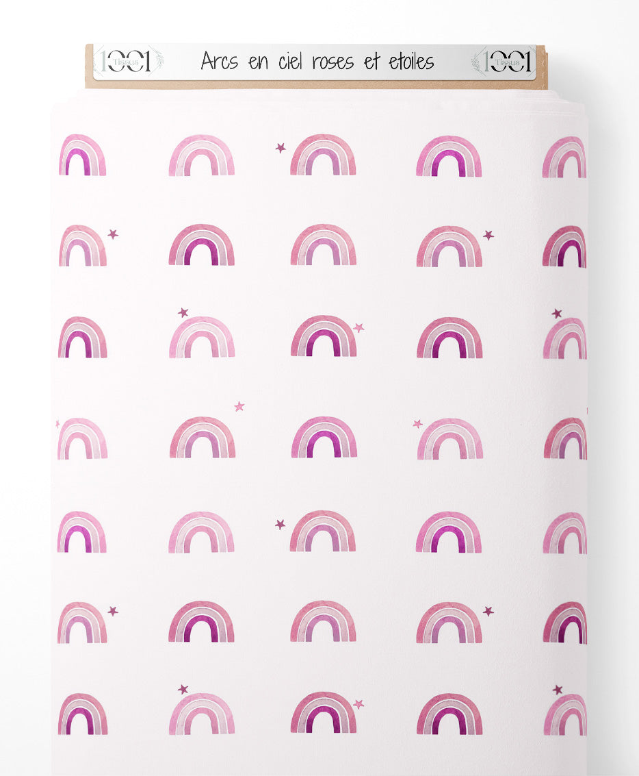 Les arcs-en-ciel présentent des nuances de rose et de violet. Les étoiles ajoutent une touche délicate au motif.Les tissus
