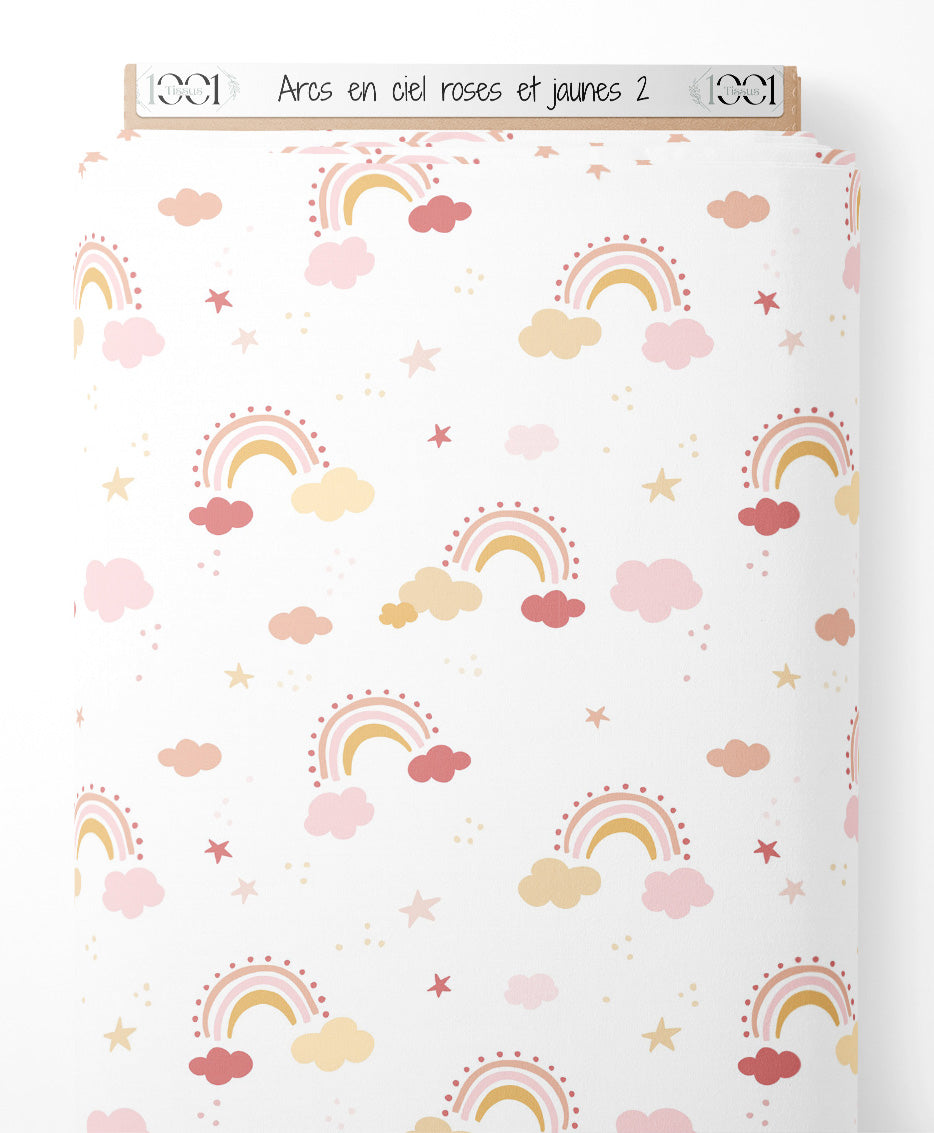 Tissu - Arcs-en-ciel roses et jaunes 2