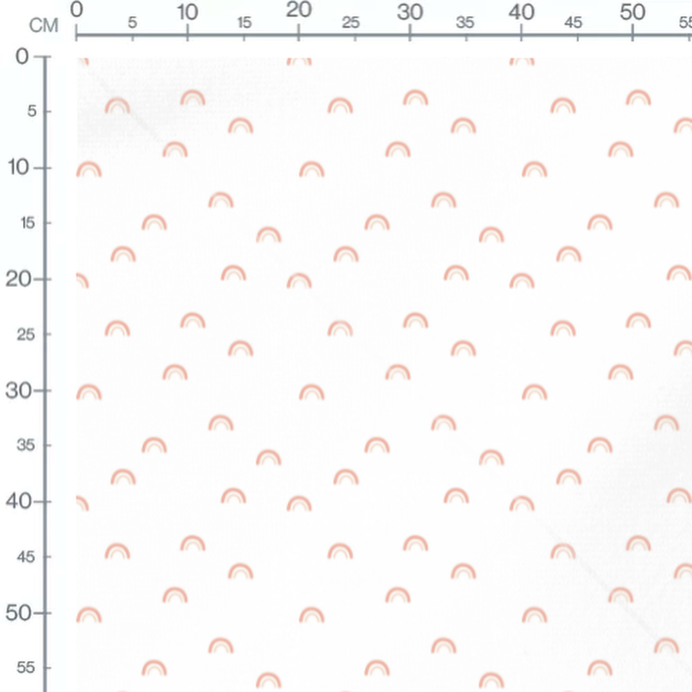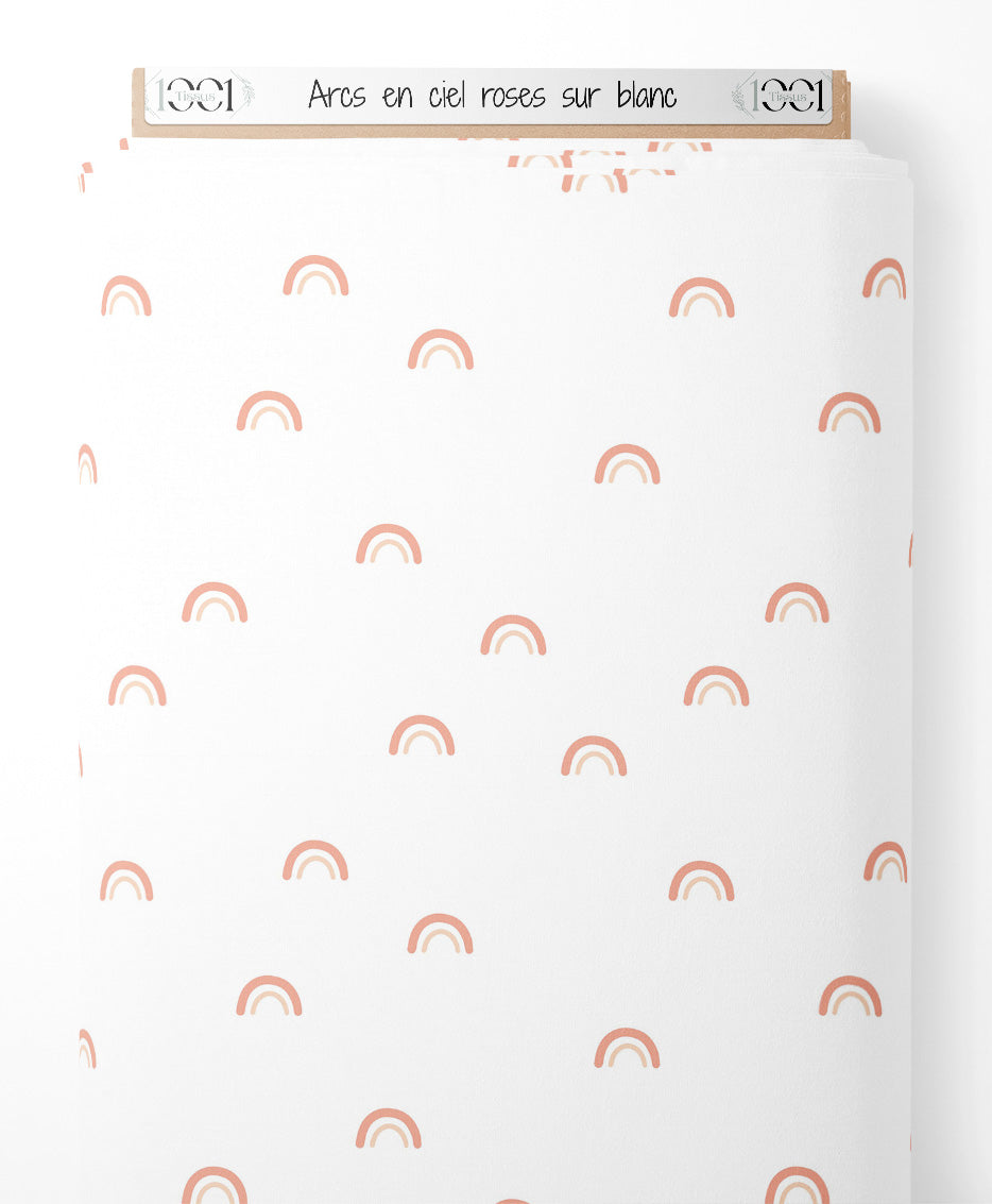 Les arcs-en-ciel sont espacés uniformément sur le fond. Chaque arc-en-ciel est composé de deux bandes de couleur rose et blanche.Les tissus