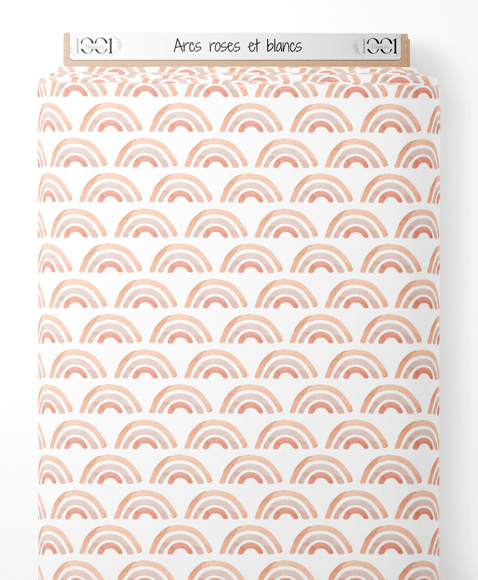 Les arcs sont disposés de manière régulière et créent un motif harmonieux. Les nuances de rose varient du clair au foncé, ajoutant de la profondeur au design.Les tissus