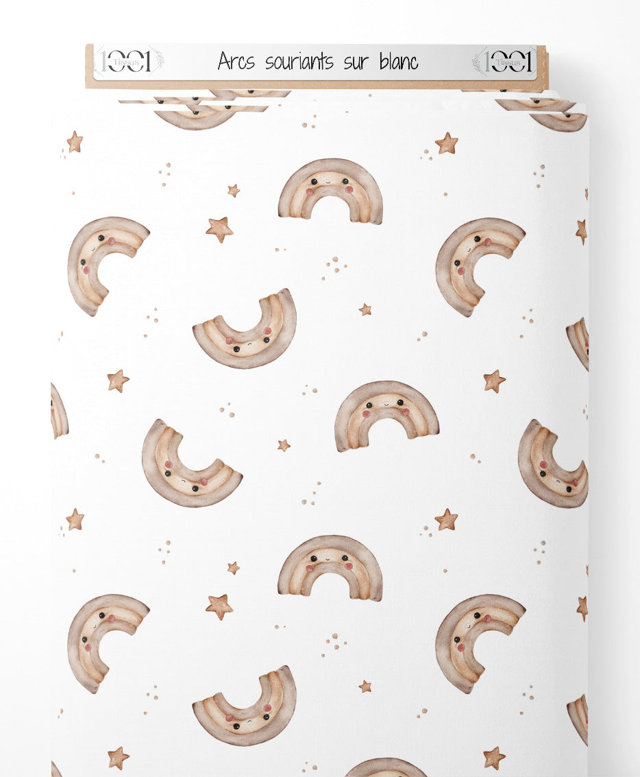 Tissu - Arcs souriants sur blanc