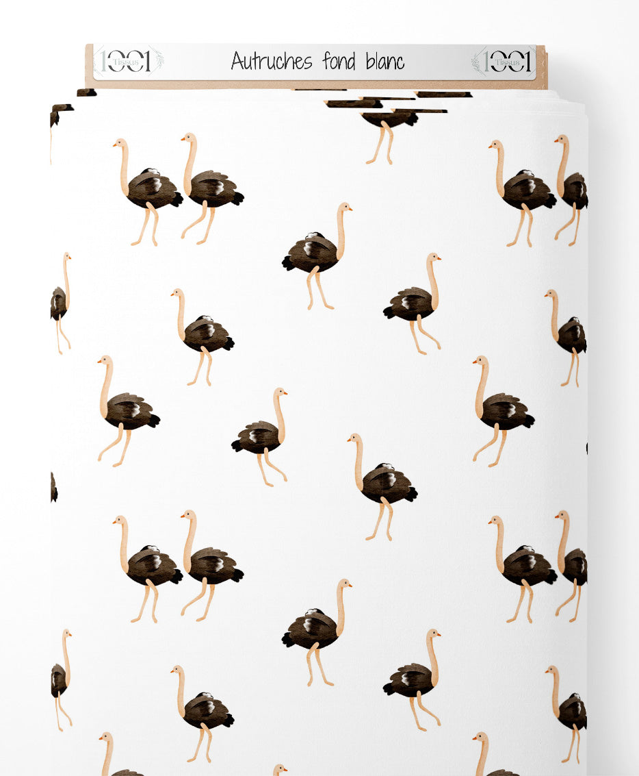 Tissu - Autruches sur fond blanc