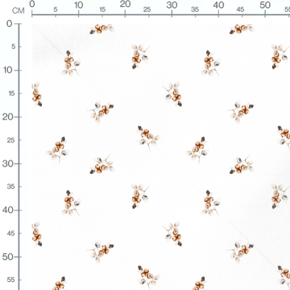 Tissu - Baies marron et feuilles blanches