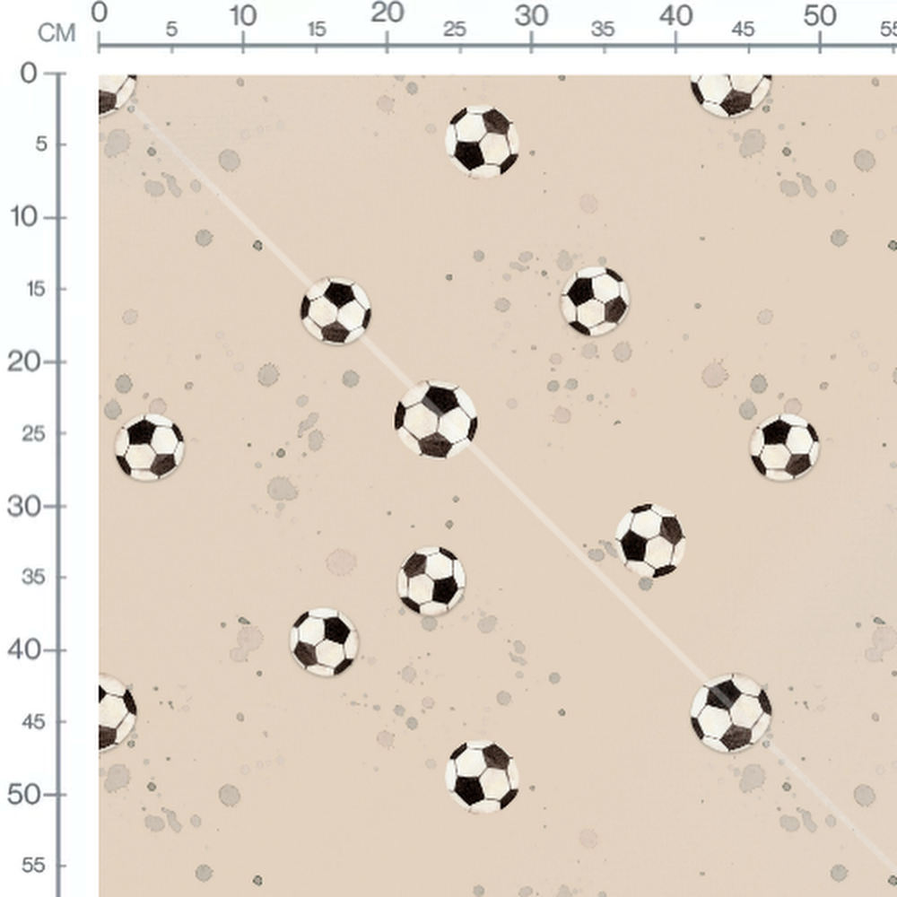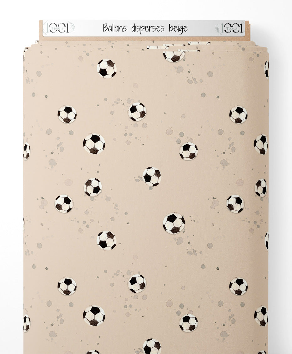 Les ballons de football sont uniformément répartis sur le fond. Les taches ajoutent une texture subtile au design.Les tissus