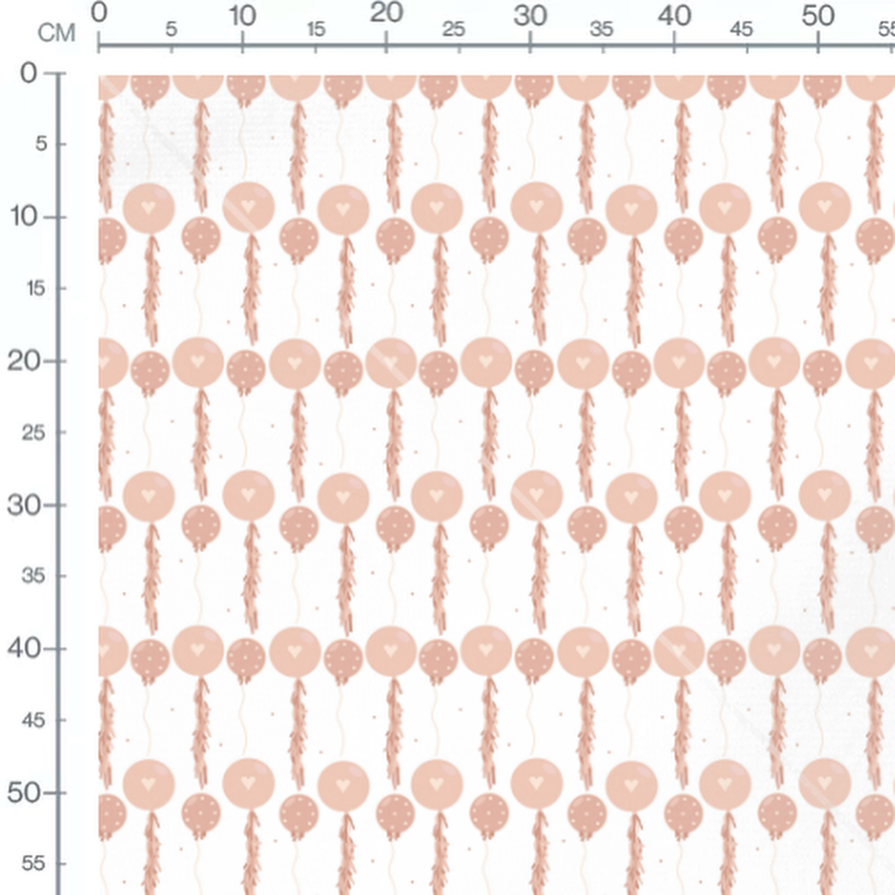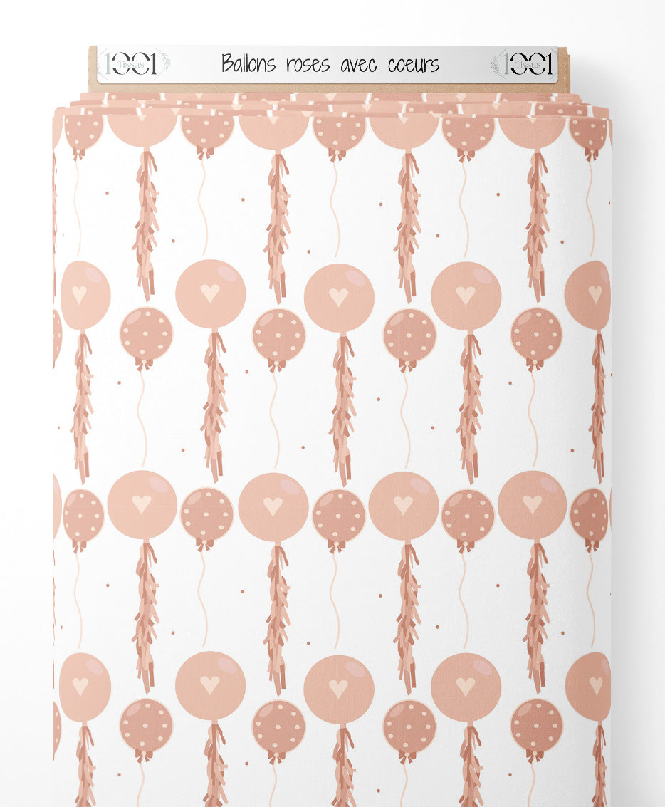 Les ballons sont ornés de petits cœurs blancs. Les franges sont longues et de couleur rose assortie.Les tissus