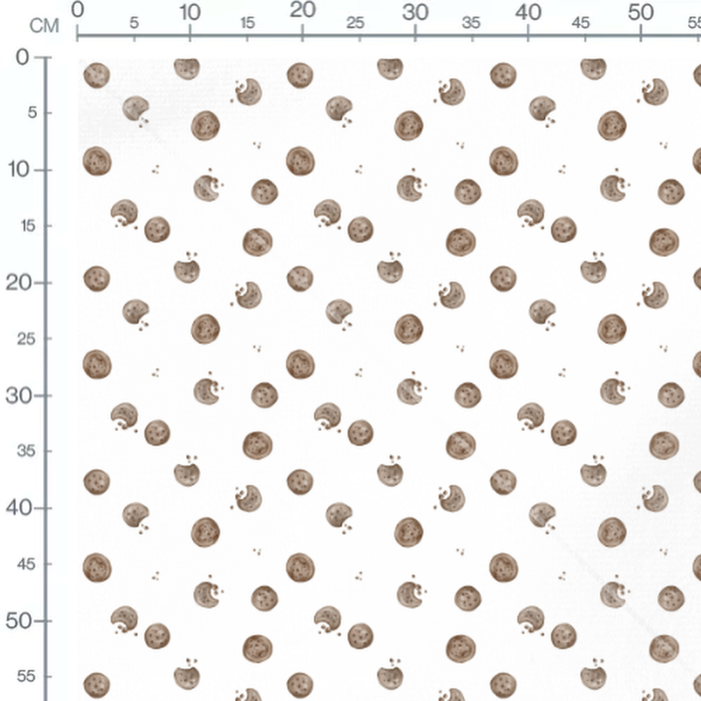Les biscuits présentent des nuances de marron avec des détails de miettes. Certains biscuits sont croqués, ajoutant une touche réaliste au motif.Les tissus