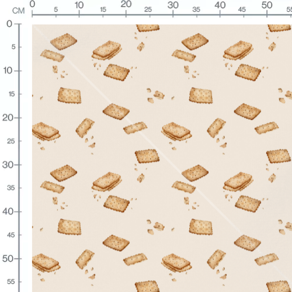 Les biscuits sont de forme rectangulaire avec des bords légèrement ondulés. Les miettes sont de différentes tailles et dispersées aléatoirement.Les tissus