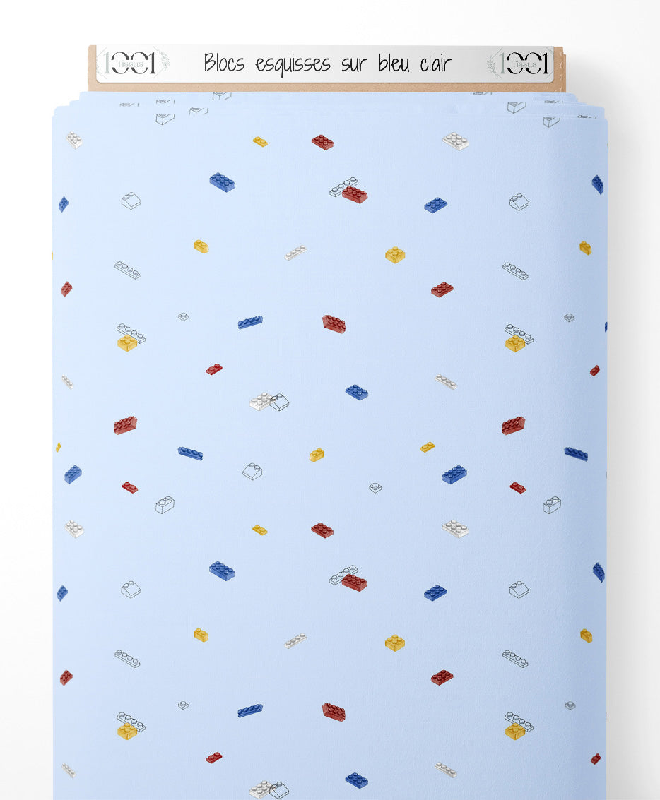Tissu - Blocs esquissés sur bleu clair