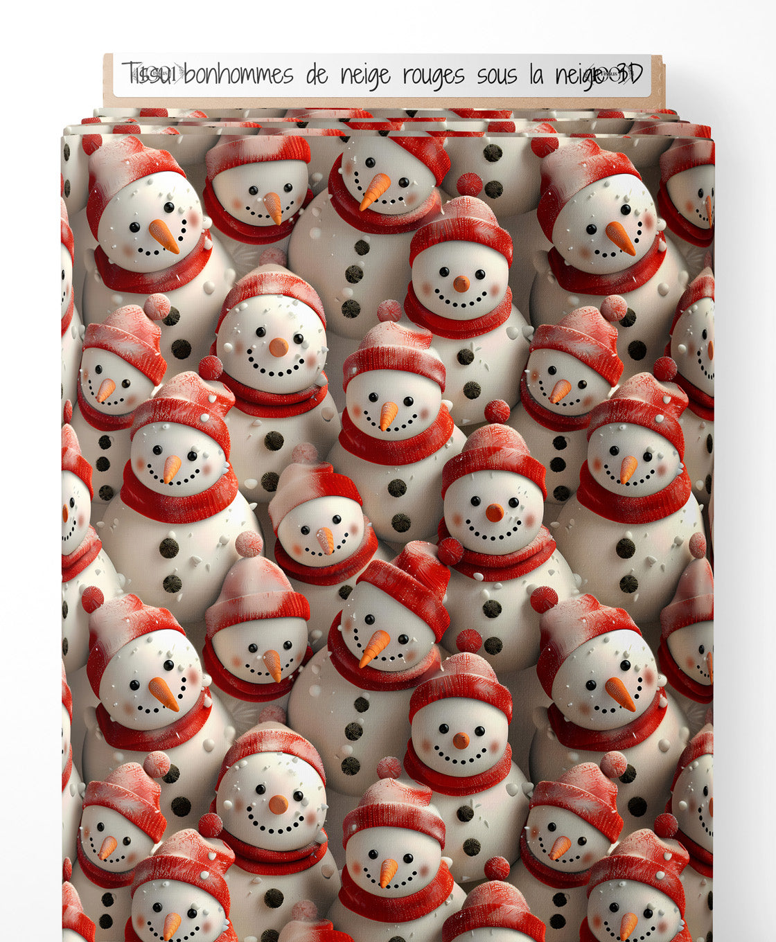 Tissu - bonhommes de neige rouges sous la neige 3D