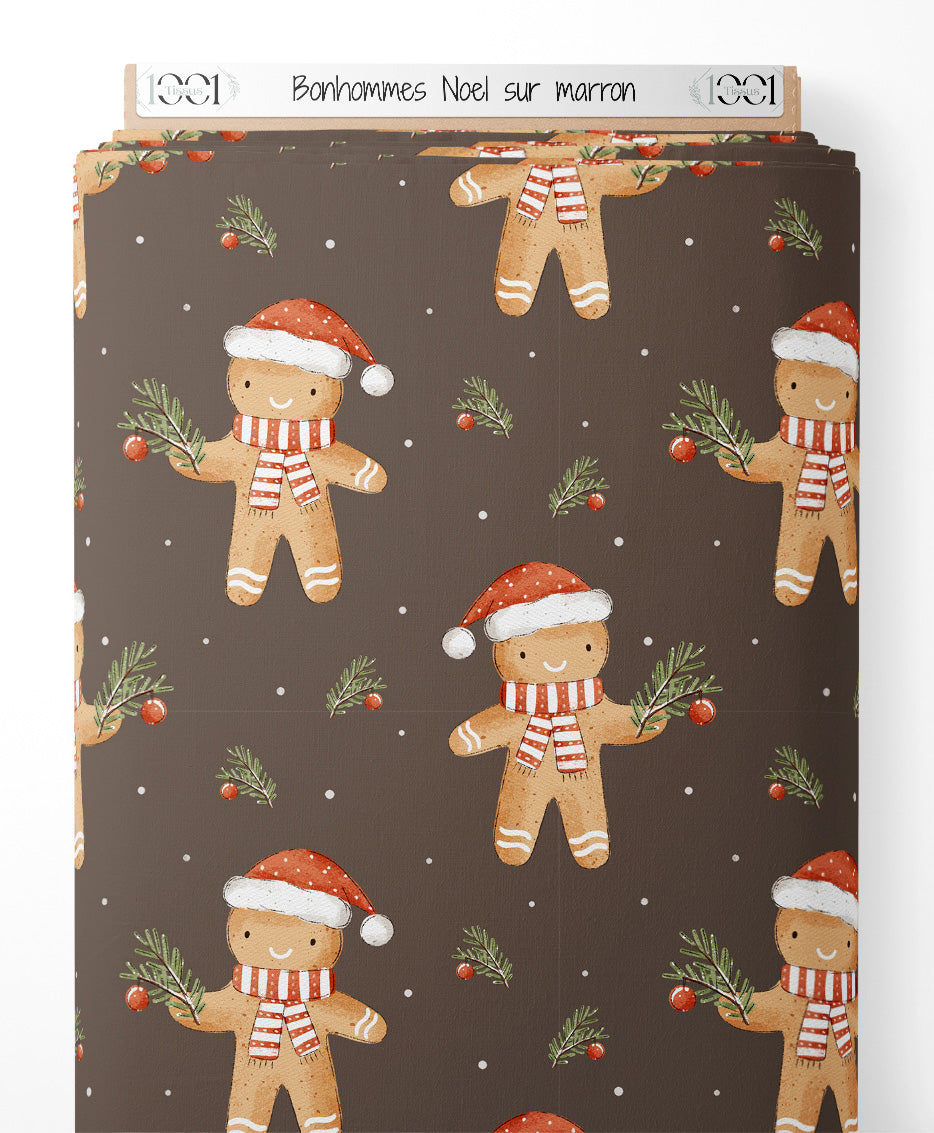 Tissu - Bonhommes Noël sur marron