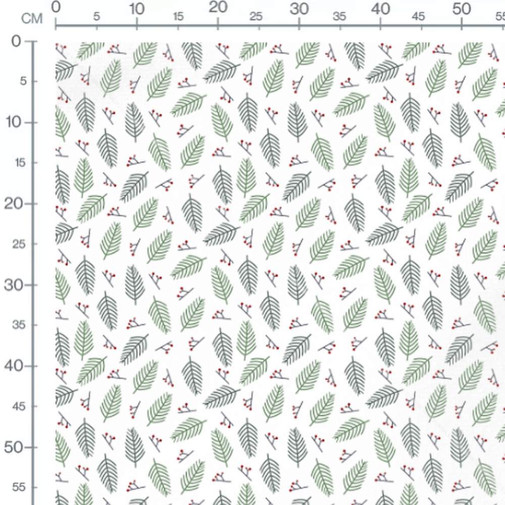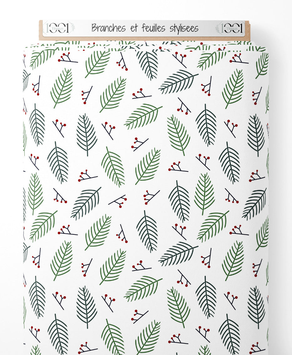 Les feuilles sont de différentes nuances de vert. Les baies rouges sont disposées par groupes de trois.Les tissus