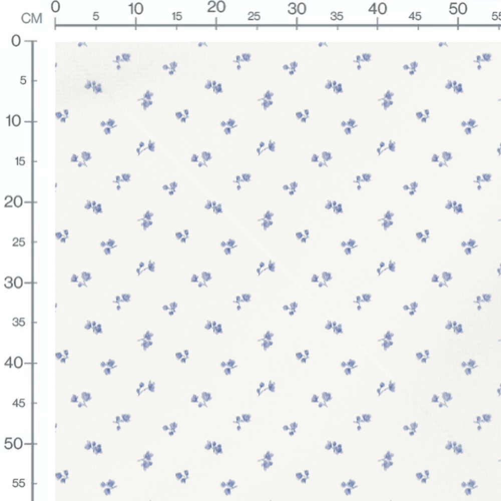 Les fleurs sont délicates et de couleur bleue. Chaque branche comporte plusieurs petites fleurs. Le fond blanc met en valeur les motifs floraux.Les tissus