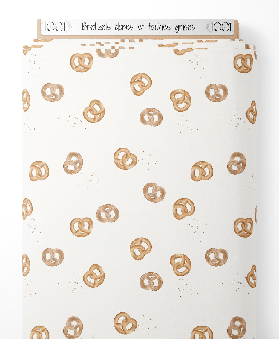 Tissu - Bretzels dorés et taches grises