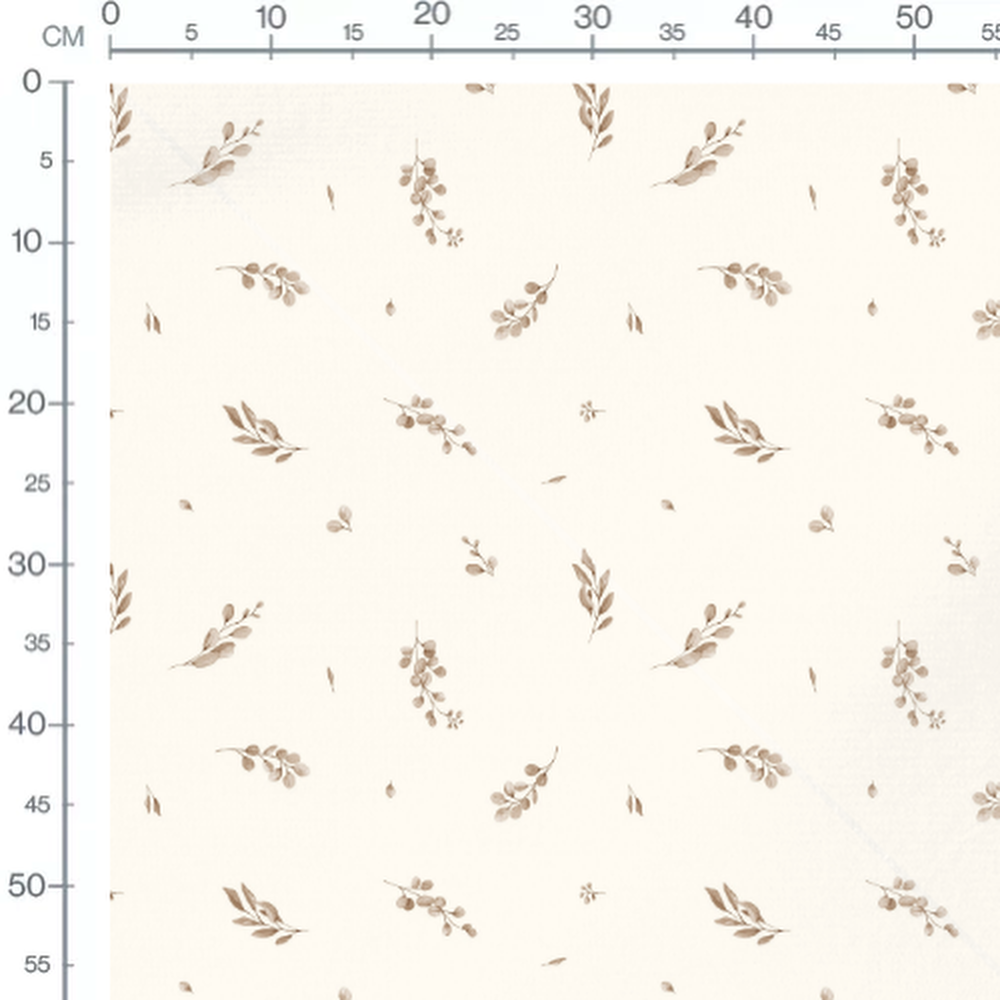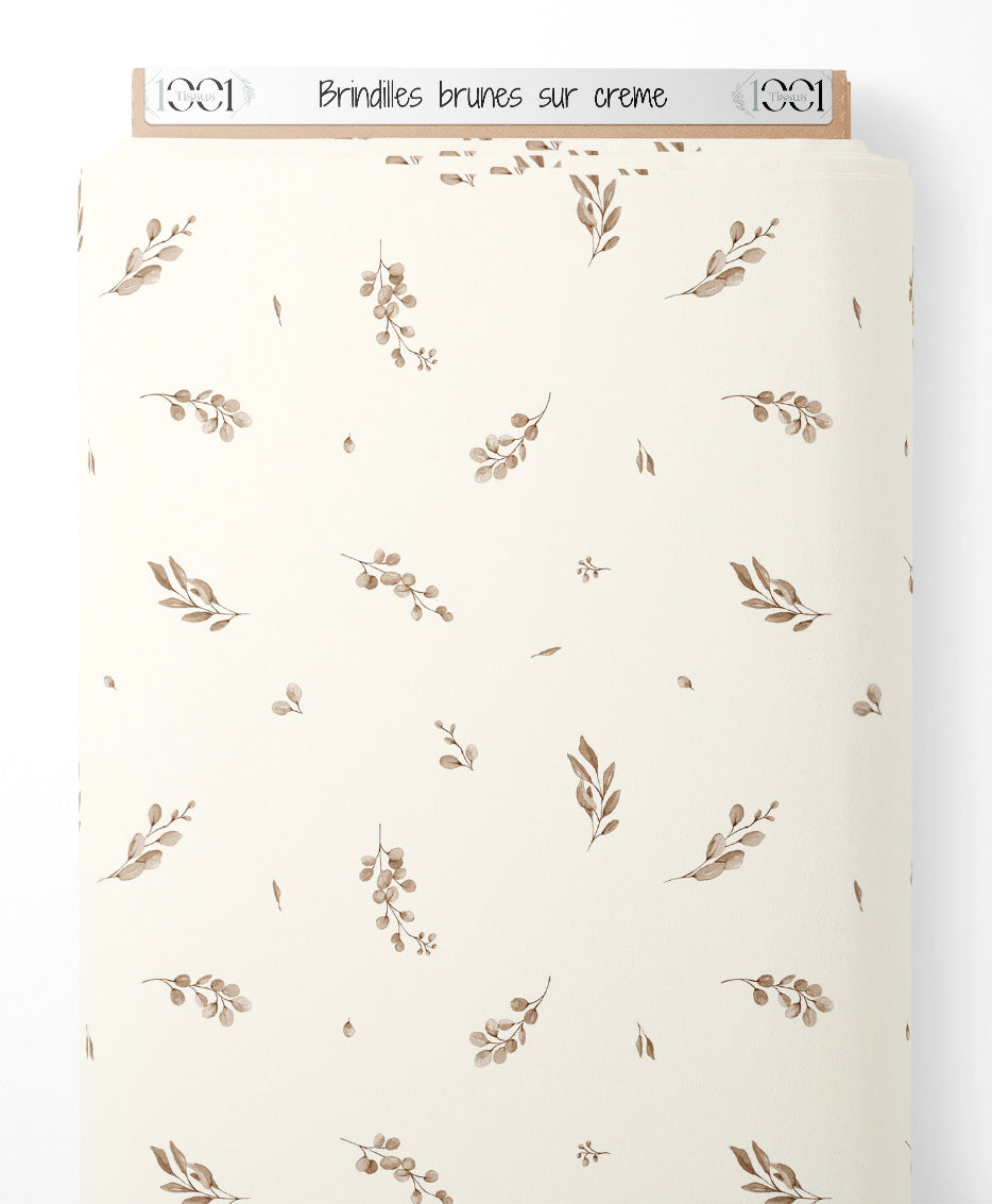 Les brindilles sont fines et délicates, avec des feuilles légèrement arrondies. Les baies ajoutent une touche de texture au motif. Le fond crème met en valeur la simplicité des éléments naturels.Les tissus