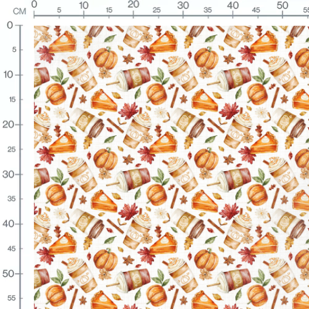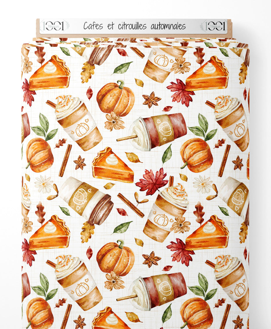 Tissu - Cafés et citrouilles automnales