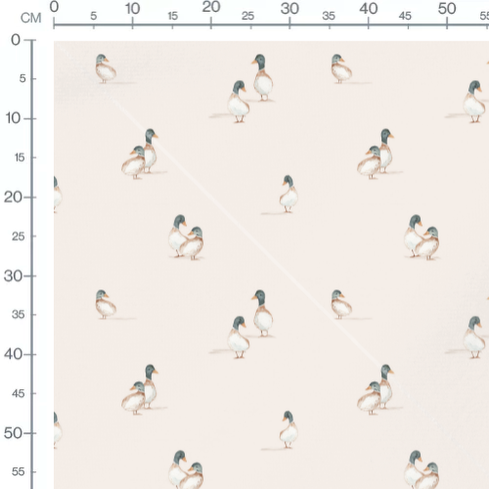 Les canards sont représentés en petits groupes ou seuls. Le fond beige met en valeur les couleurs douces des canards.Les tissus