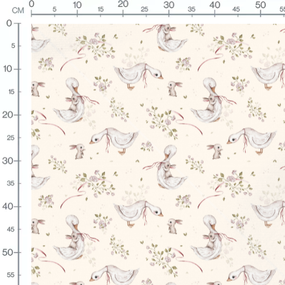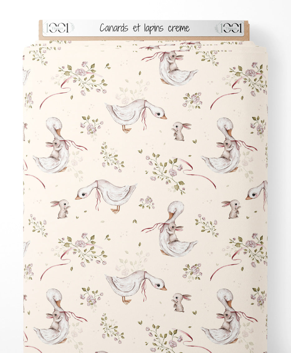 Tissu - Canards et lapins crème