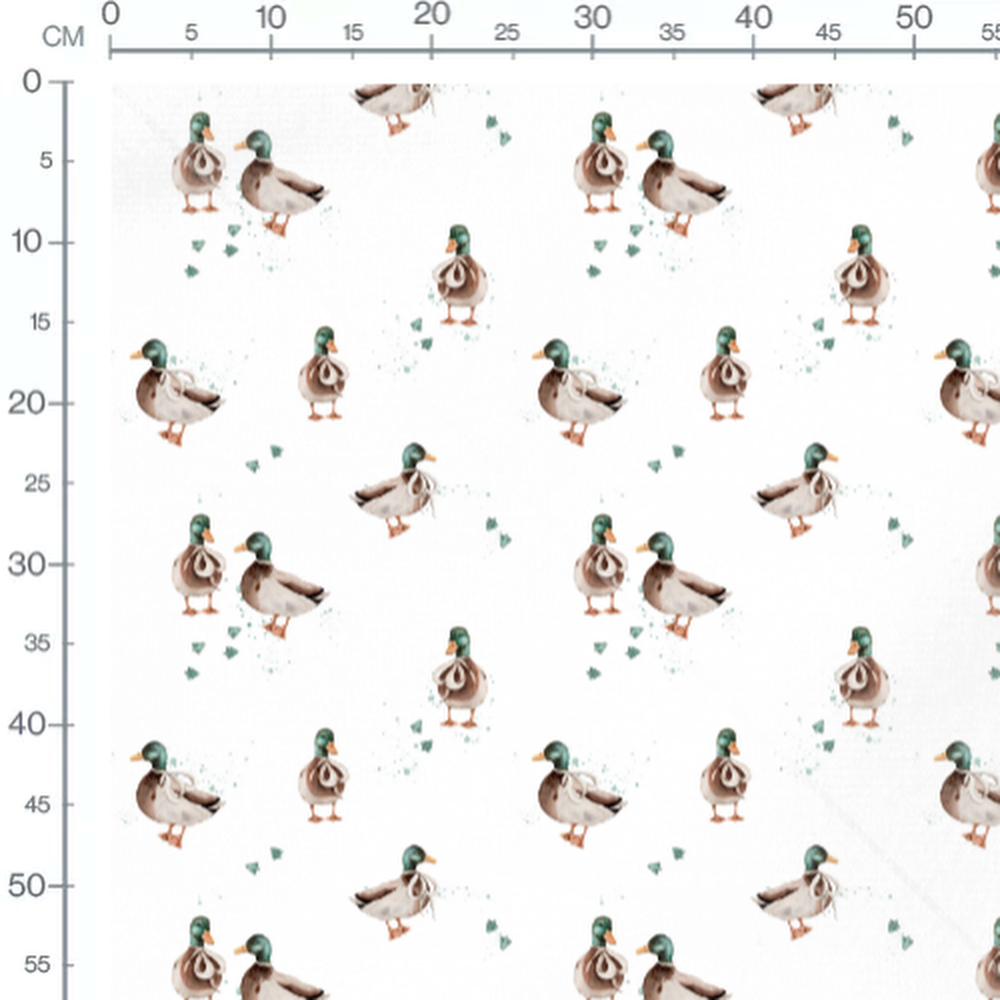 Les canards ont des plumes marron et des têtes vertes. De petites éclaboussures vertes ajoutent un effet aquarelle. Les canards sont dispersés sur un fond blanc immaculé.Les tissus