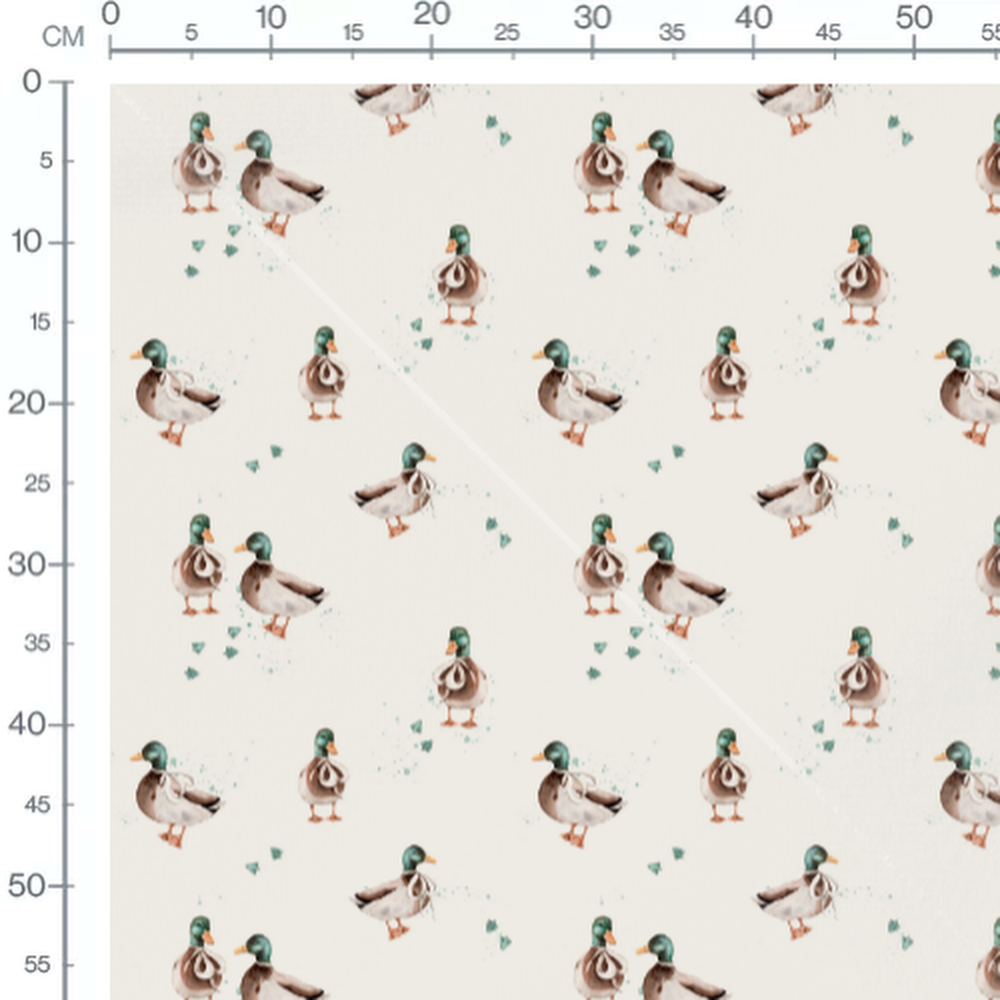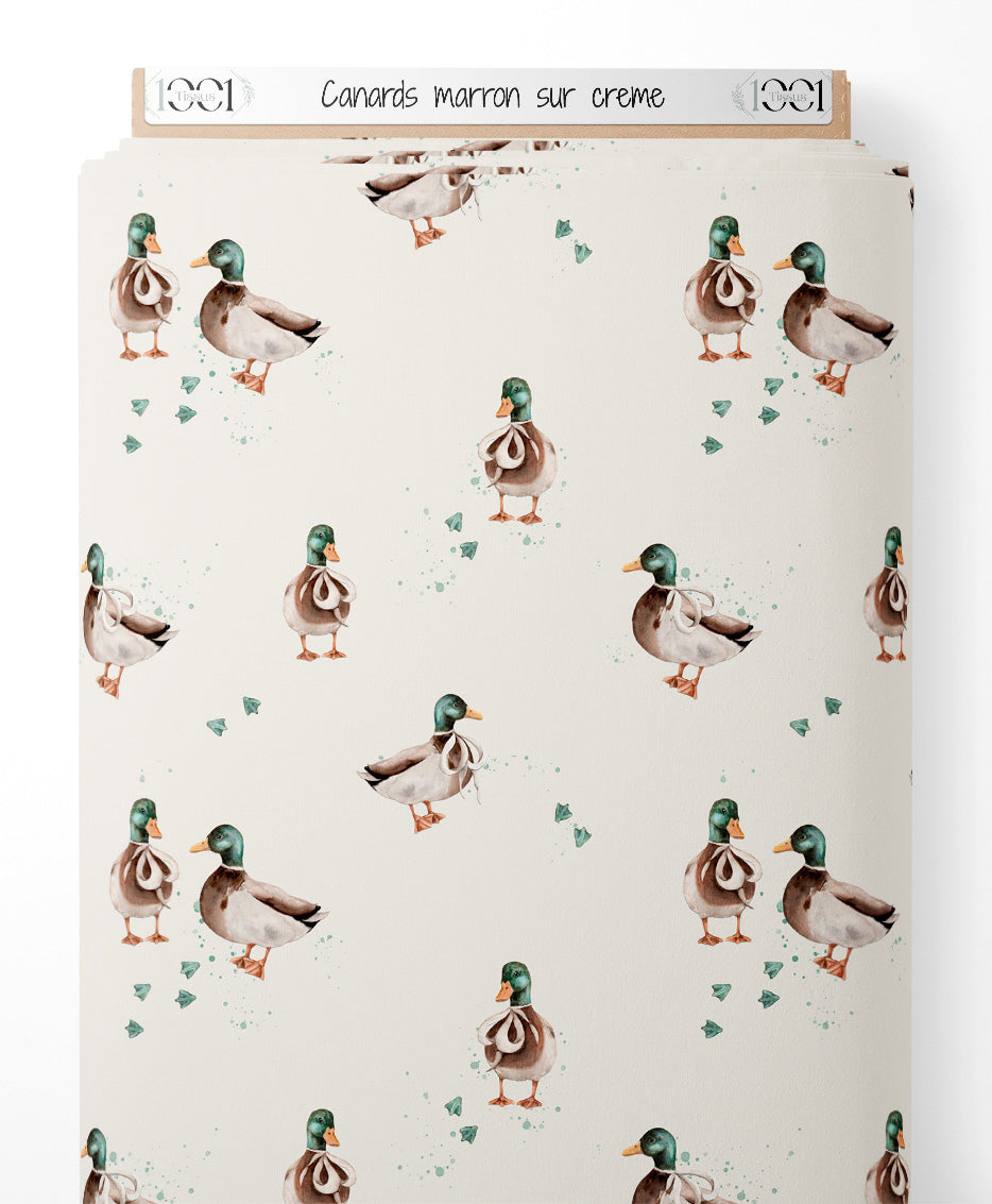 Les canards ont des plumes marron et une tête verte. De petites éclaboussures vertes ajoutent un effet artistique autour des canards.Les tissus