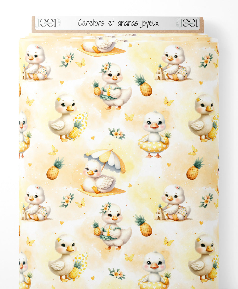 Tissu - Canetons et ananas joyeux