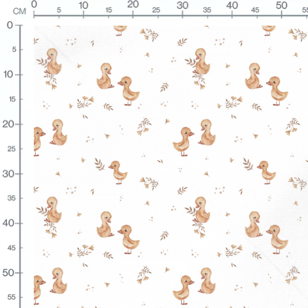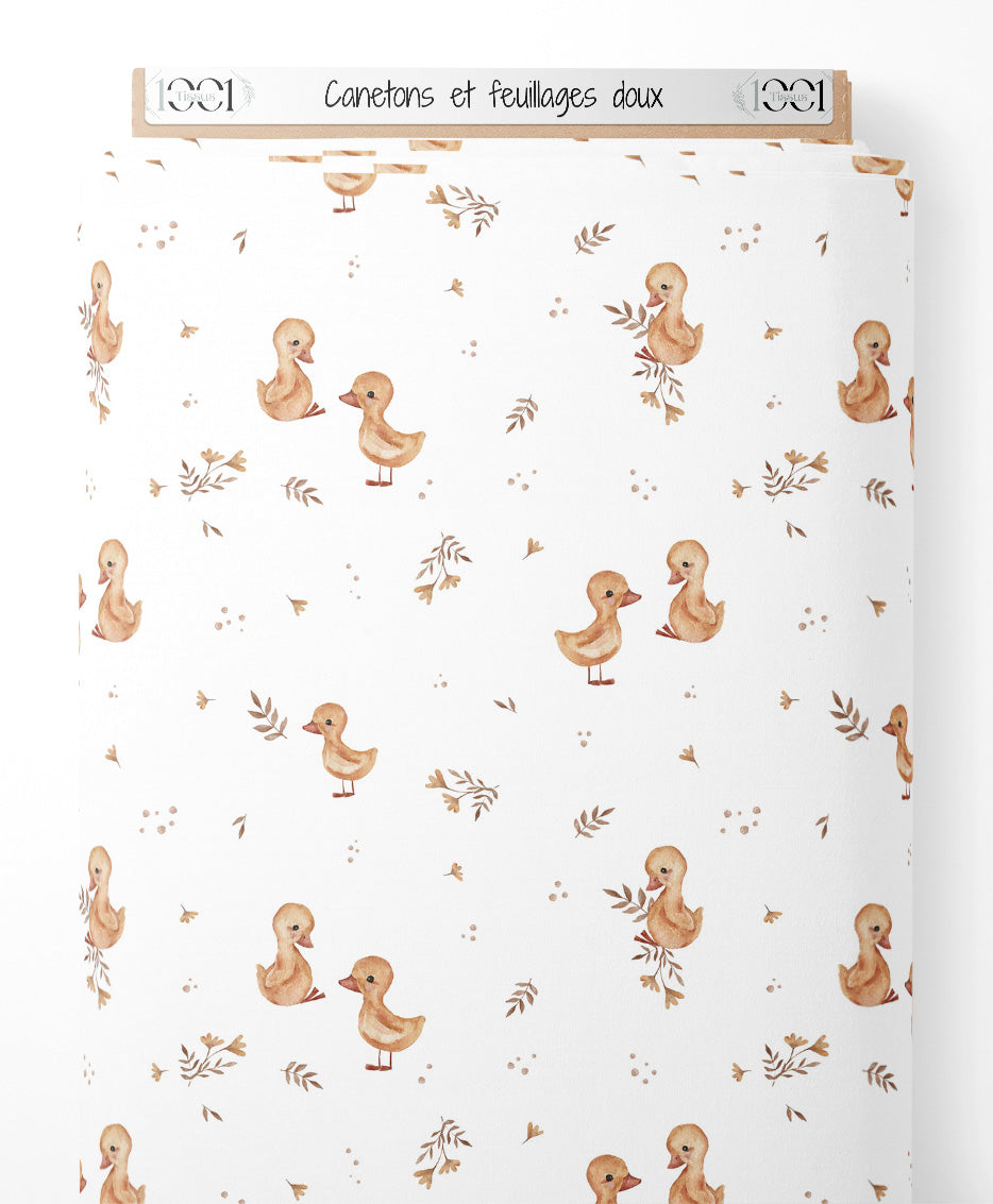 Tissu - Canetons et feuillages doux