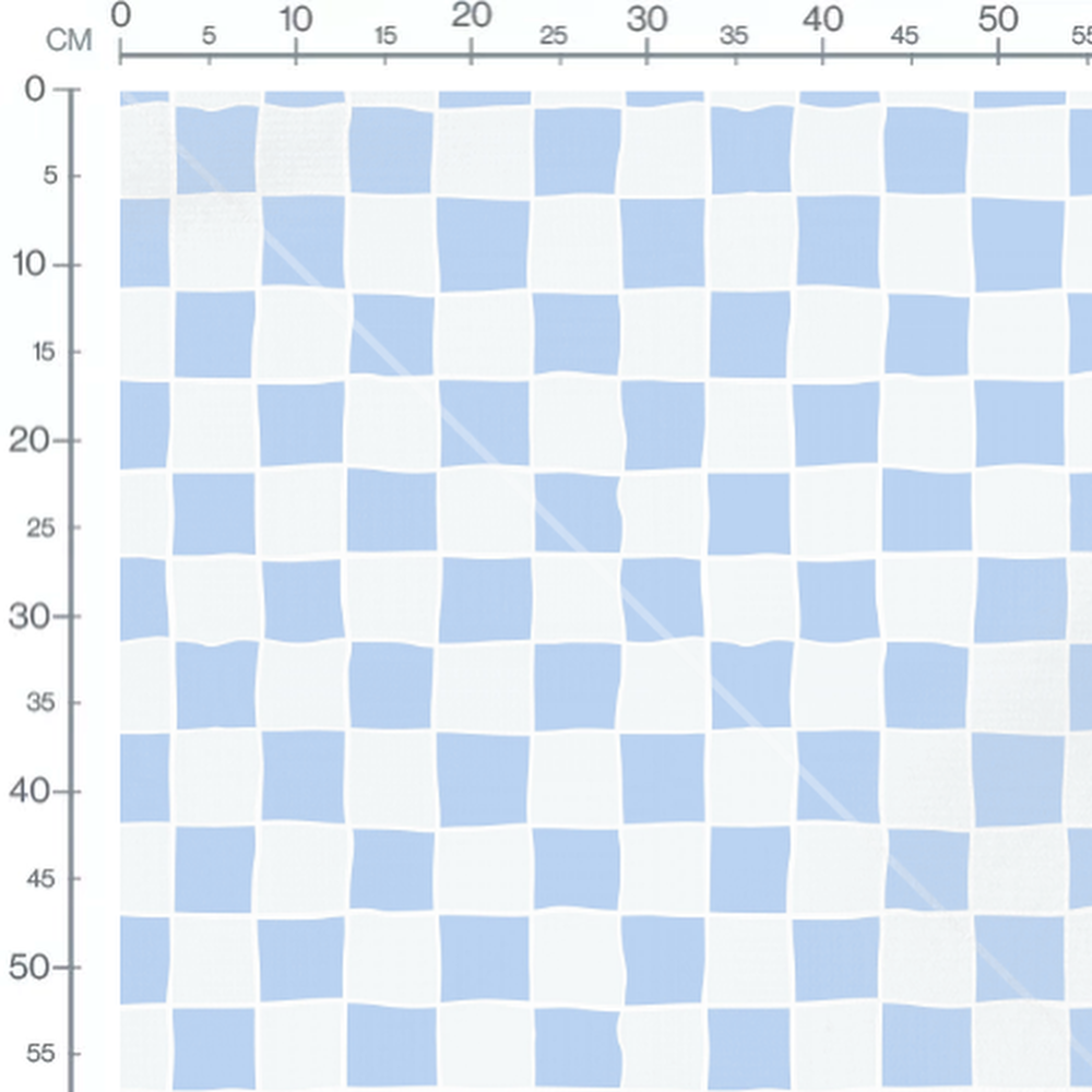 Les carreaux alternent entre bleu clair et blanc. Le motif crée un effet visuel apaisant et régulier.Les tissus