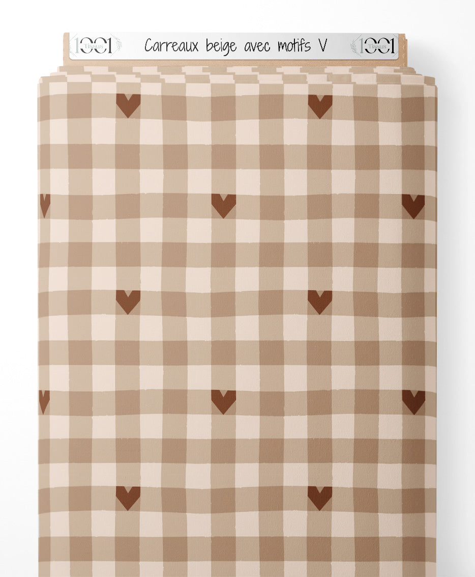 Tissu - Carreaux beige avec motifs V