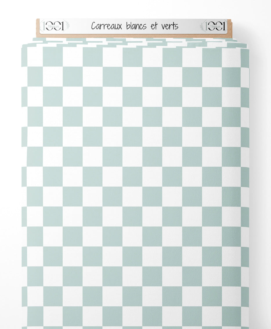 Carreaux blancs et verts sur fond uni. Motif géométrique simple et régulier.Les tissus