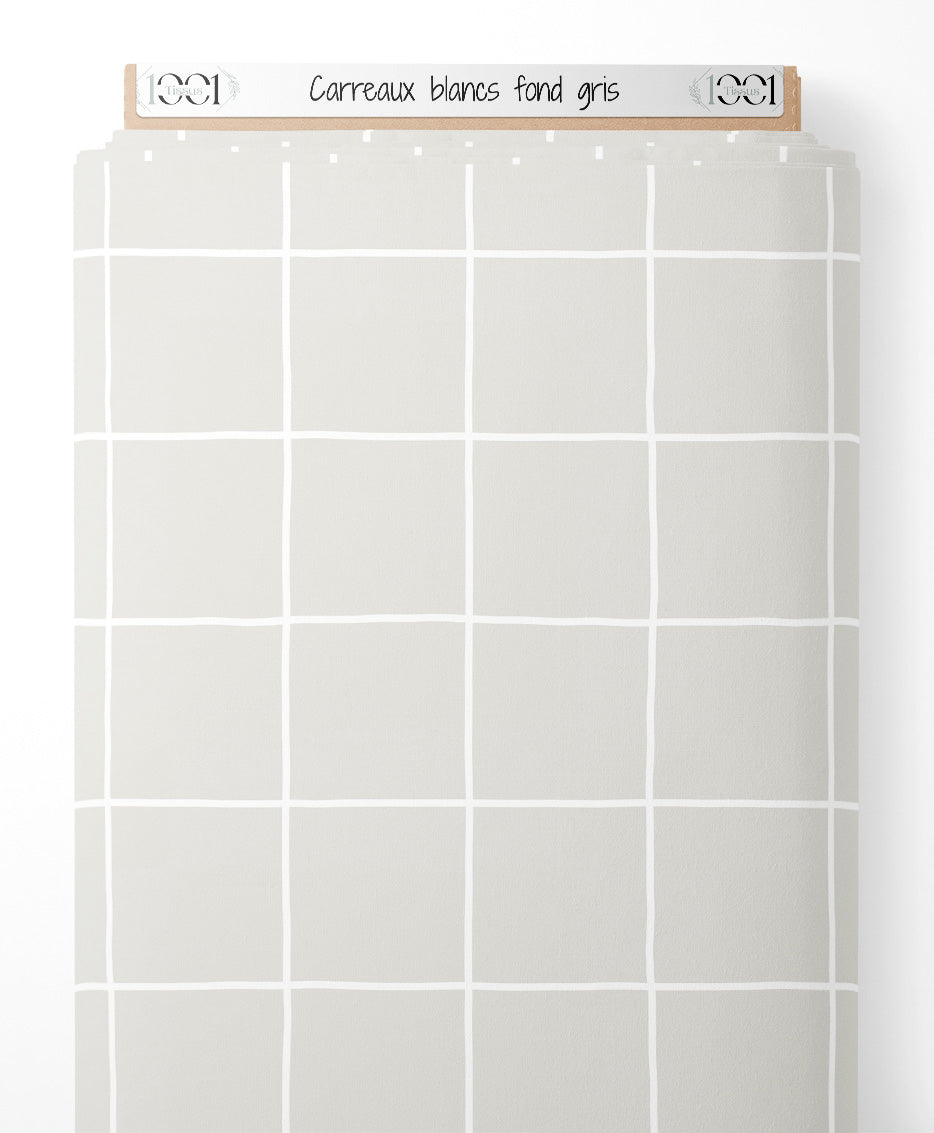 Carreaux blancs sur fond gris clair. Motif simple et épuré.Les tissus