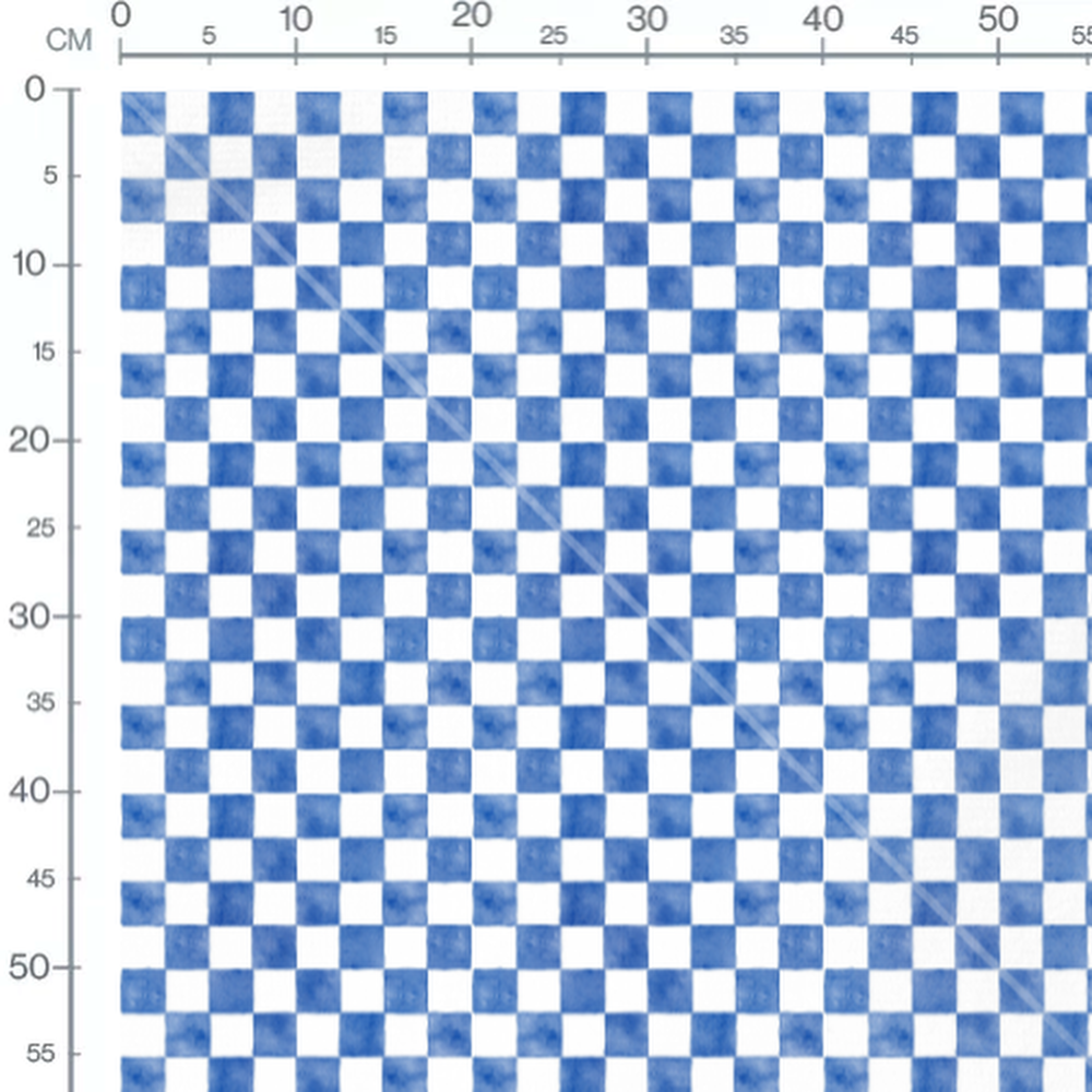 Les carreaux sont de taille uniforme et présentent une texture aquarelle. Le bleu des carreaux varie légèrement en intensité, ajoutant de la profondeur au motif.Les tissus