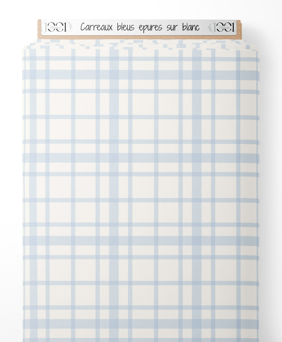 Les lignes bleues forment un motif de carreaux réguliers. Le fond blanc met en valeur la simplicité du design.Les tissus