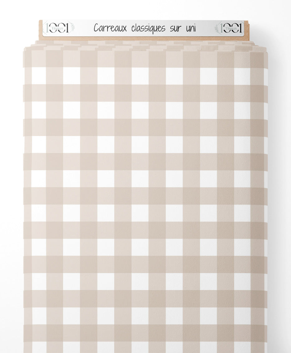 Les carreaux sont de taille uniforme et alternent entre beige et blanc. Le motif crée un effet visuel classique et intemporel.Les tissus