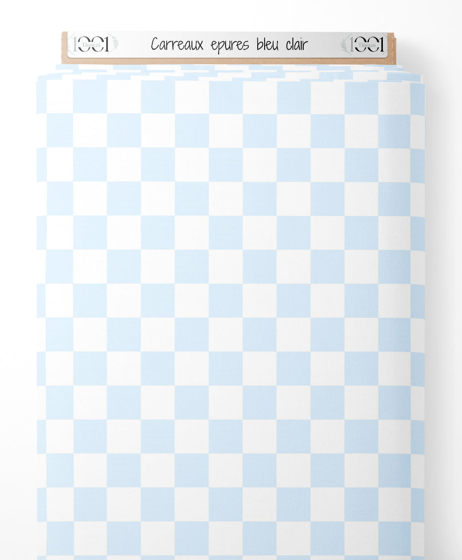 Les carreaux sont de taille uniforme et alternent entre le bleu clair et le blanc. Le motif crée un effet visuel classique et épuré.Les tissus