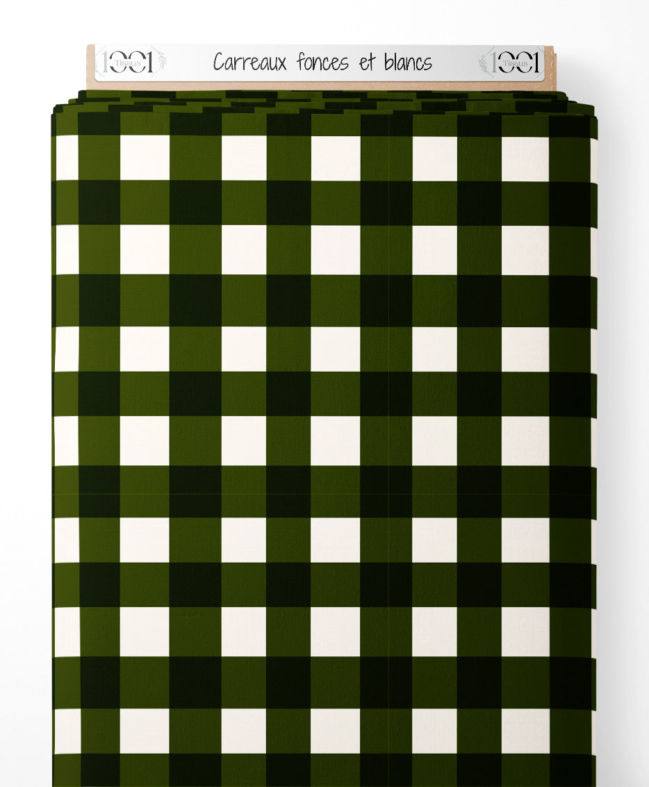 Les carreaux sont de taille uniforme et alternent entre vert foncé et blanc. Le motif crée un effet visuel classique et intemporel.Les tissus