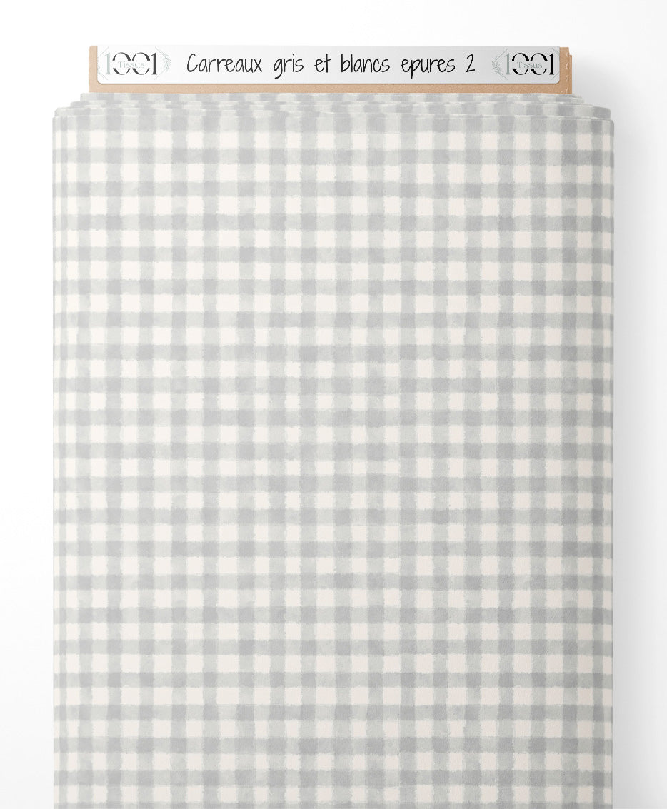 Les carreaux sont de taille uniforme et alternent entre le gris et le blanc. Le motif crée un effet visuel classique et épuré.Les tissus