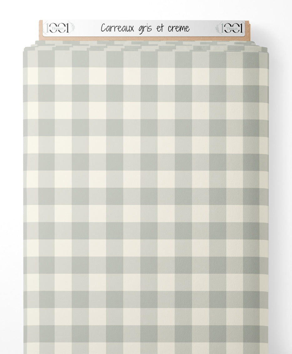 Les carreaux alternent entre le gris et le crème. Le motif crée un effet visuel classique et intemporel.Les tissus