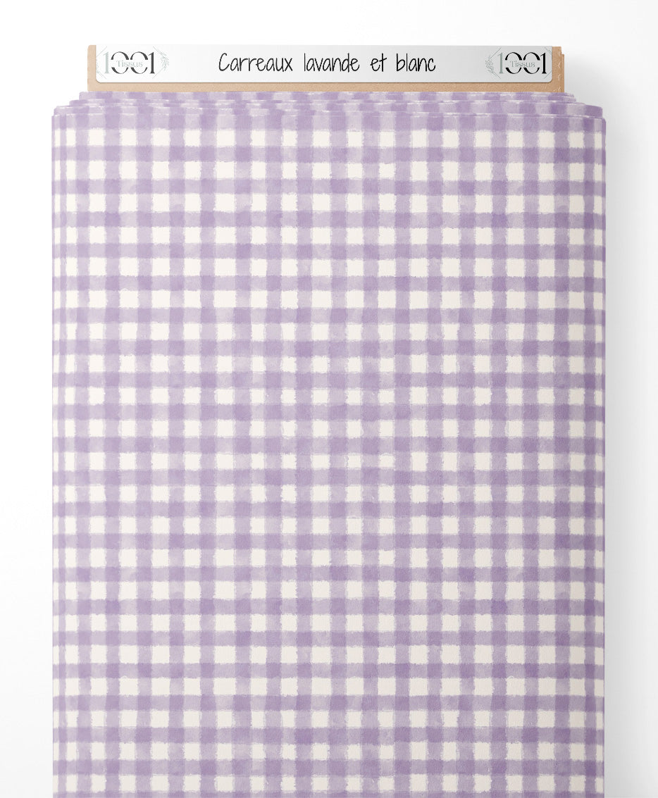 Tissu - Carreaux lavande et blanc